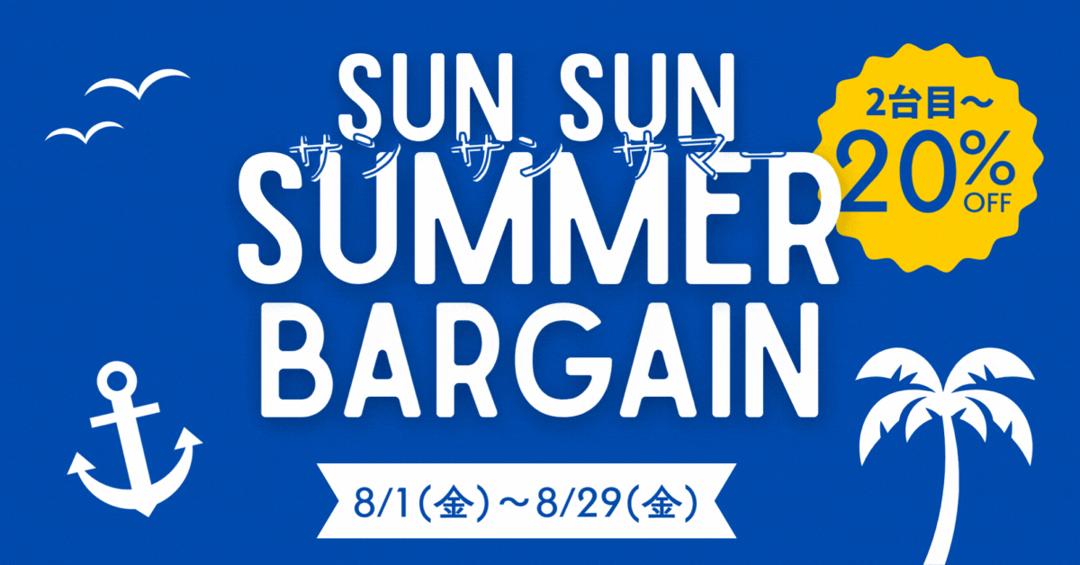期間限定<2台目~20%割引実施中